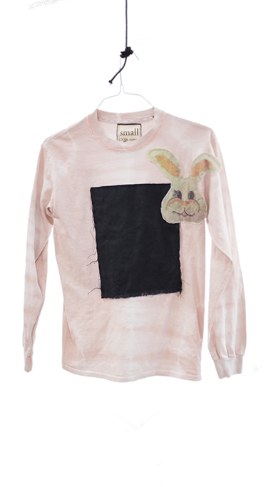 Bunny Long Sleeve Limited quantity. 100% Cotton. Canvas patch front and back. Printed bunny patch on front. Vintage polyester Alife fabric patch on back. Sewn detail on sleeve. Stitching at neckline. Full-length printed tag. Hand-tinted with vintage dyes. In collaboration with @1liltoe Preshrunk. Made in Portland, Oregon. All printing, sewing and dyeing done by hand. Expect slight variations.